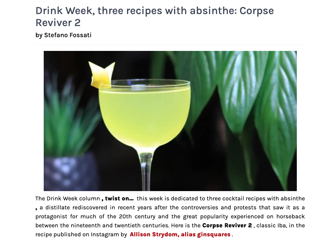 Ranked 29/50 in The Top 50 Cocktail Influencers on Feedspot in 2023