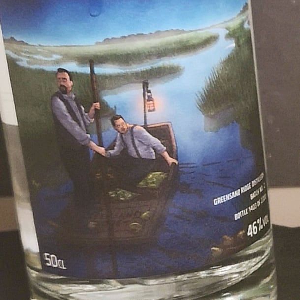 Salt Marsh Gin is Greensand Ridge's second collaboration with TBGC and takes inspiration from the salt marshes found in Kent's Weald and naturally features botanicals you would expect to find there. Once again the whimsical label tells a little story with the image of Greensand Ridge founder, Will Edge and TBGC's David T. Smith, who are punting through the salt mashes on a misty moonlit night accompanied by lots of little frogs - smuggling or foraging, who knows!