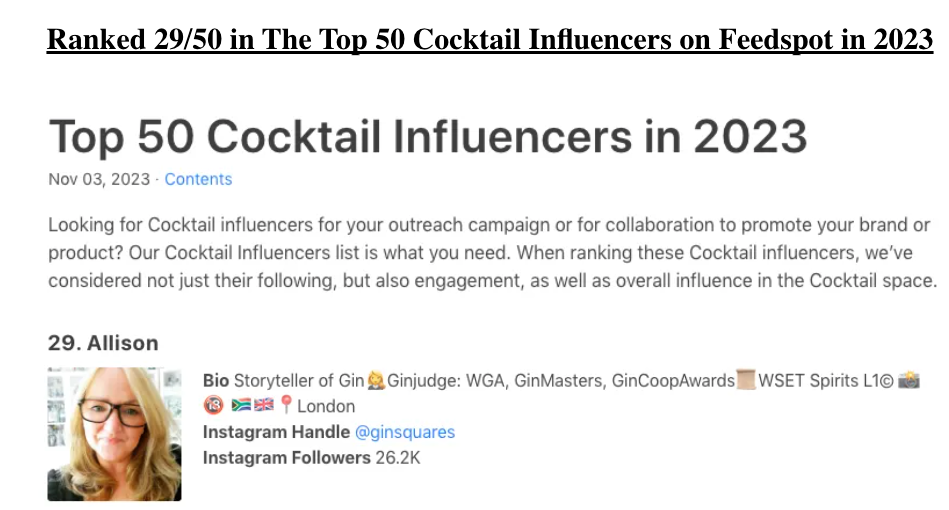 I regularly post content on social media about whatever gin (or indeed other spirits) I'm drinking or reviewing. I often collaborate with brands, so if this is of interest to you, please do get in touch.