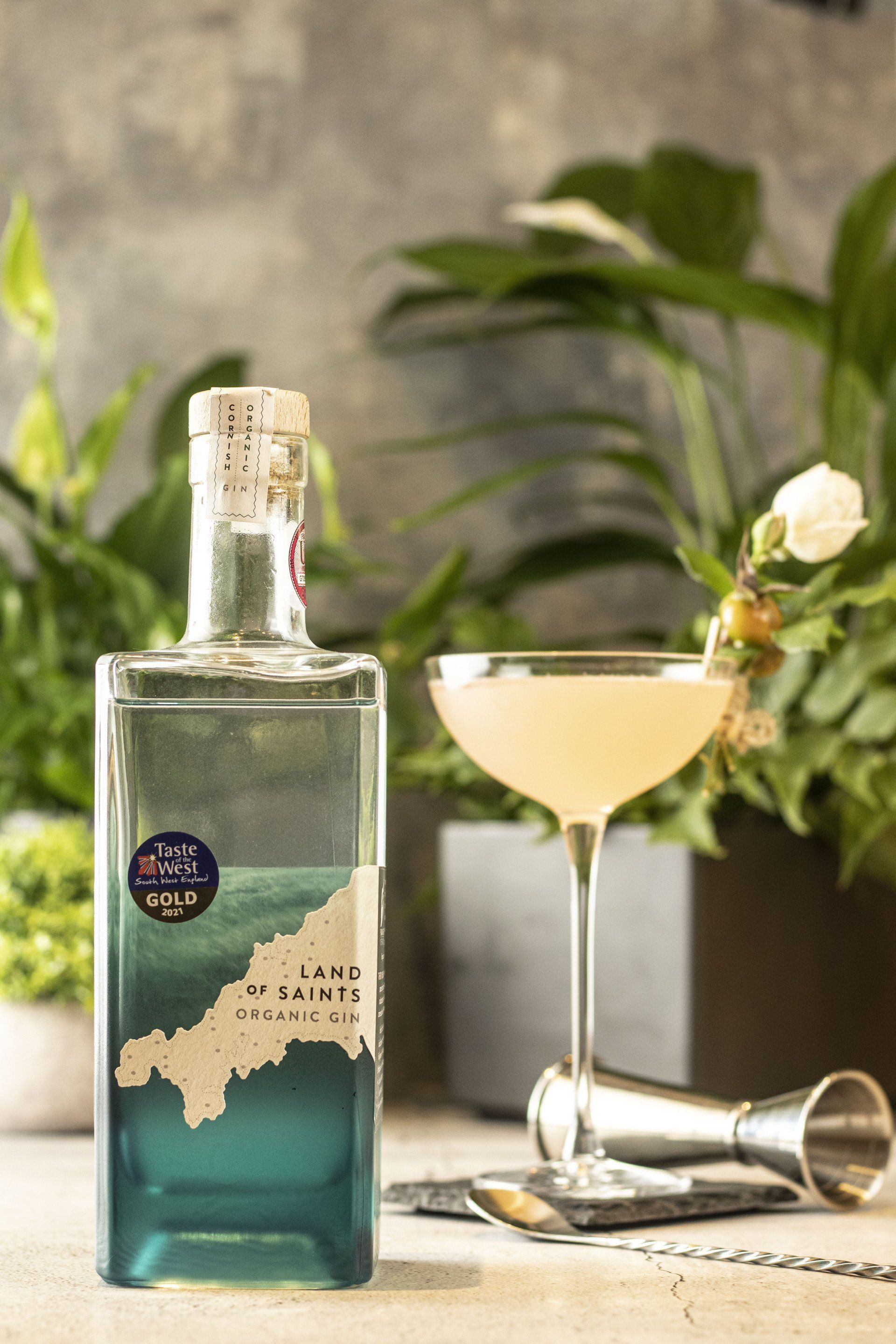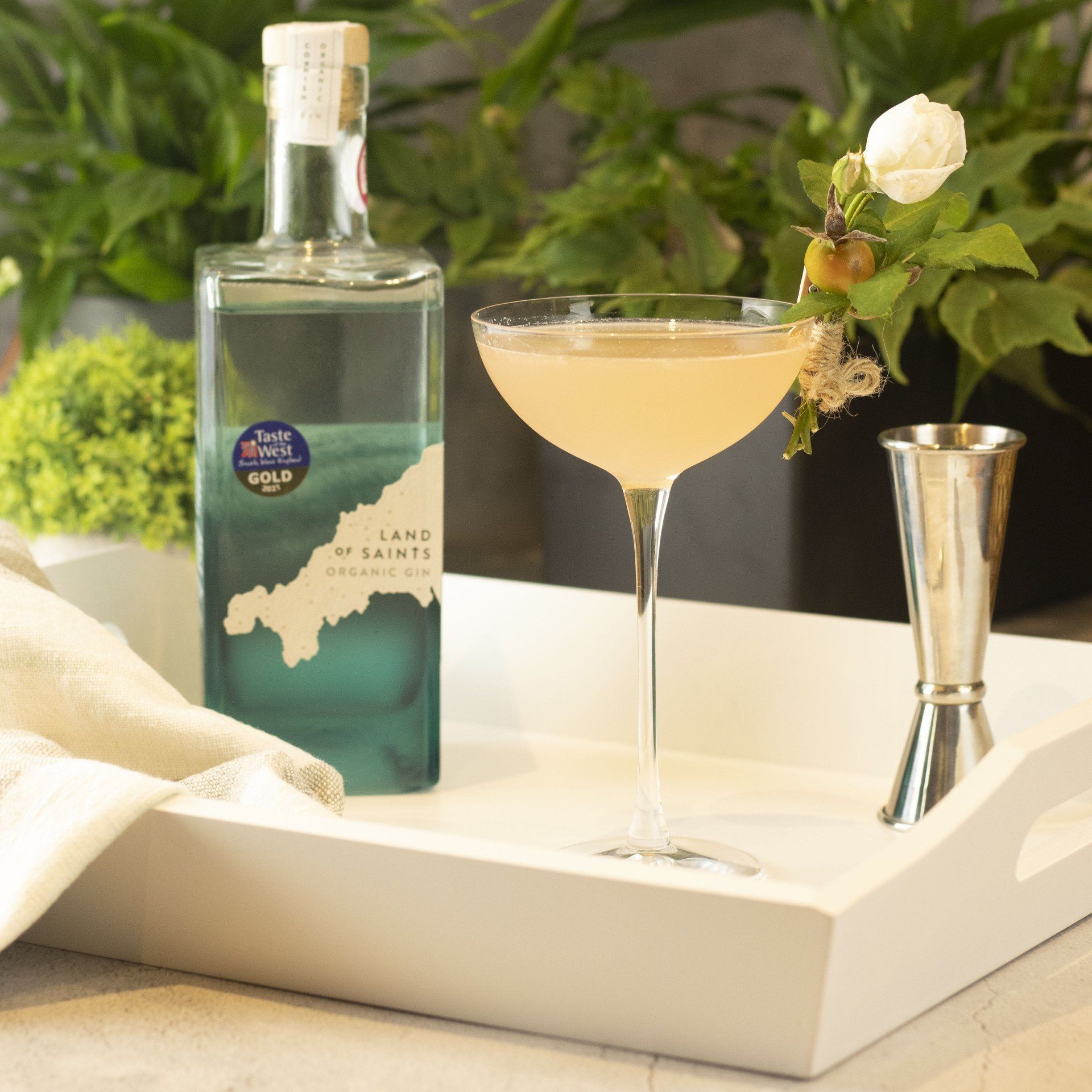 One of the more recent additions to the list of Cornish gins is Land of Saints Organic Gin. If you assumed due to the colours and design of the bottle and label, that this was a coastal gin you would be very wrong! The beautiful turquoise tones and map of Cornwall on the label pinpointing many towns named after Saints, lull you into assuming this is going to be all about salinity and seaside botanicals but actually this gin is celebrating all things florals. The botanical lineup of thirteen organic botanicals, including coriander seeds, cardamom pods, pink peppercorns, ginger root, dried rose buds, hyssop, orange peel, camomile, violet leaves, blueberries, nutmeg and orris root is beautifully balanced and such a surprise. It's distilled with pure Cornish water, organic grain and of course the star botanical - juniper - and it has been approved by The Biodynamic Association due to the use of high level and approved organic ingredients.